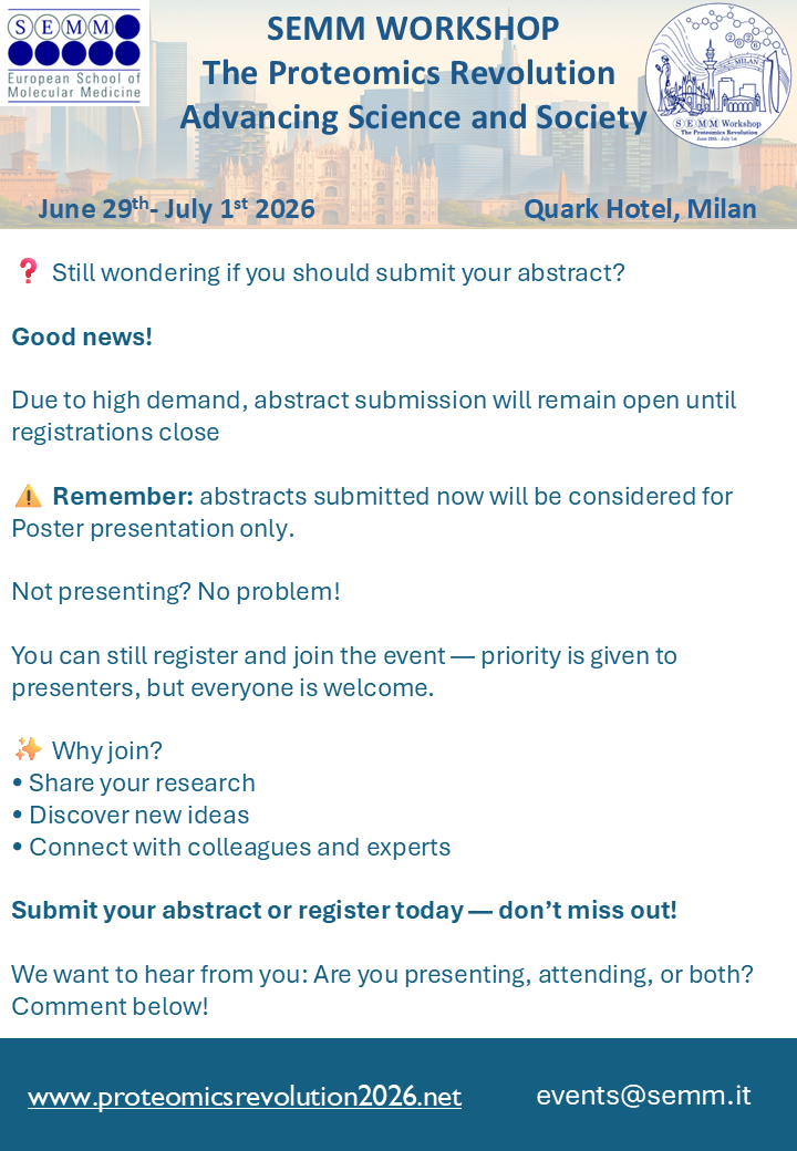 Workshop SEMM “The Proteomics Revolution: Advancing Science and Society” abstract submission deadline extended to 30 March 2026